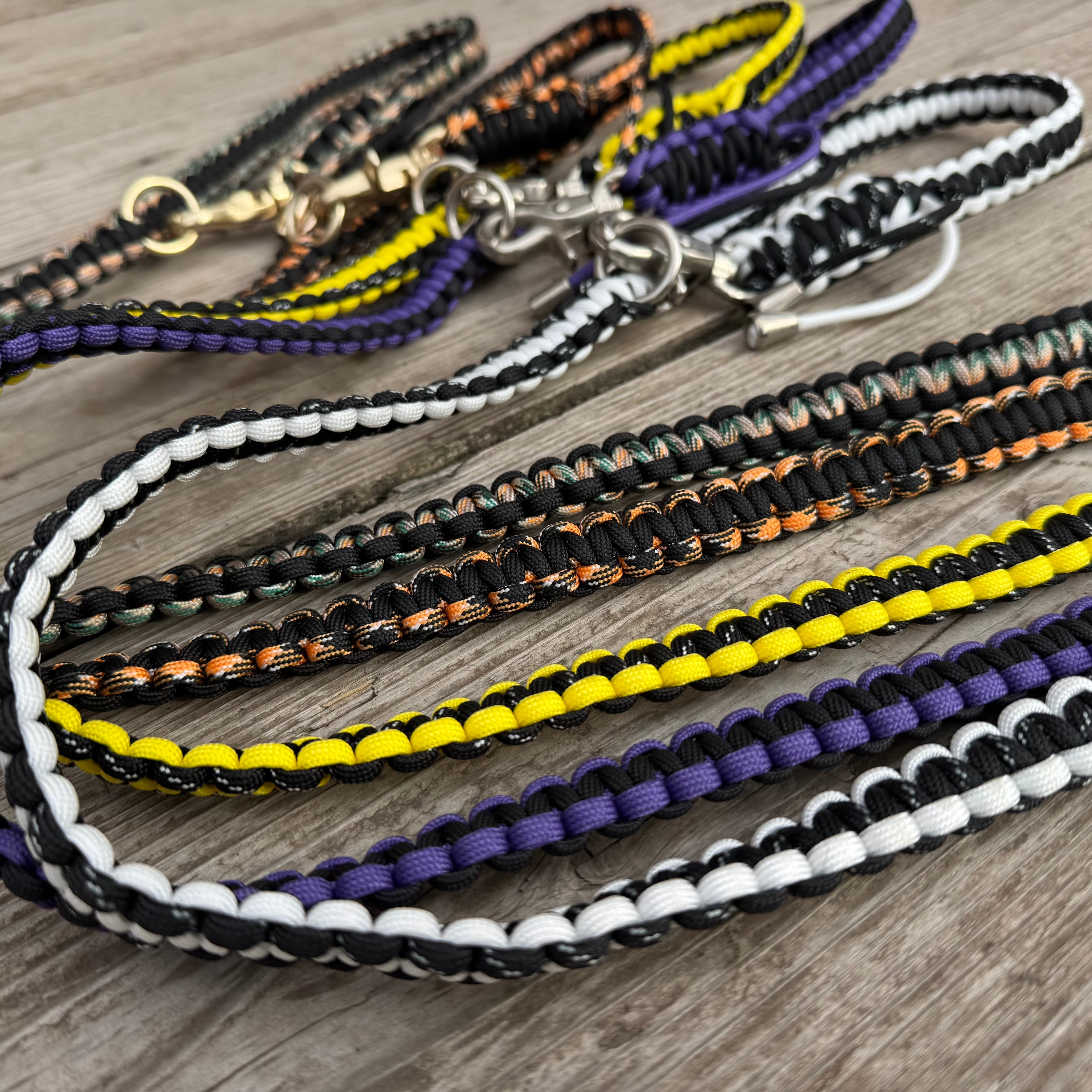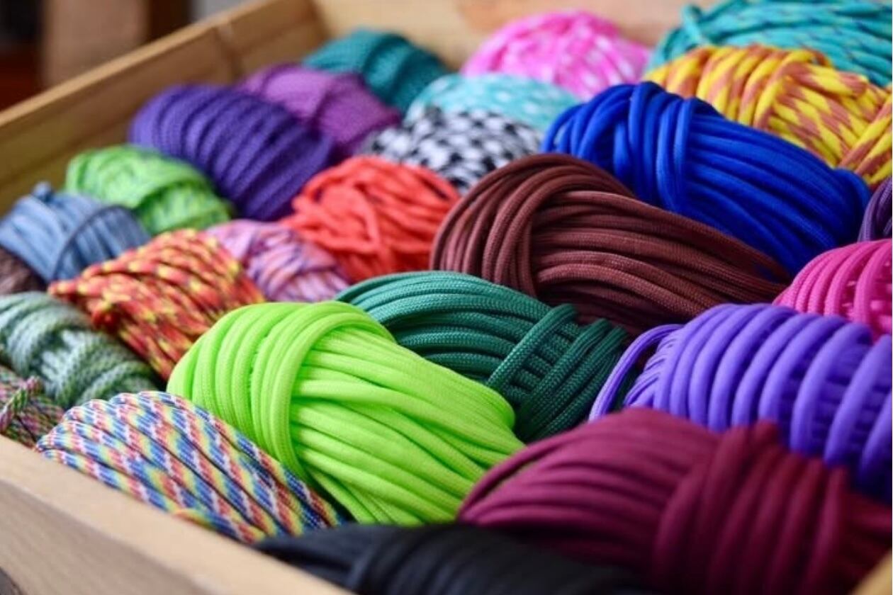 丈夫なパラコードを使用し1本ずつ手作業で丁寧に編み上げています。